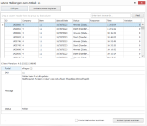 Das Meldungsfenster ist ein zentrales Element des OmniSeller eCommerce PIM-Systems, das die Benutzer bei der Überwachung des Upload-Status von Produktdaten zu verschiedenen Online-Shops unterstützt.