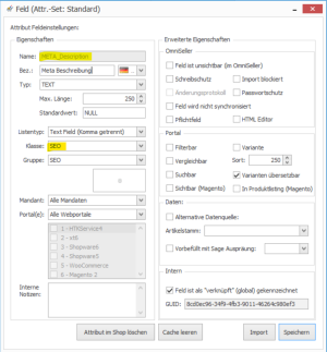 Hierfür müssen im OmniSeller entsprechende Attribute angelegt werden. Es folgt nun eine Auflistung der Shop-Felder und deren dazugehörige Attribute im OmniSeller.