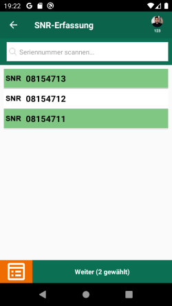 In der Seriennummernerfassung haben Sie je nach Modi die Möglichkeit Seriennummern zu erfassen oder bestehende Seriennummern auszuwählen.
