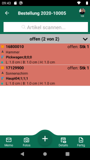 Omnimde ablauf einkauf wareneingang beleguebersicht 06 erfasstesitem swipe links.png