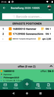 Omnimde ablauf einkauf wareneingang beleguebersicht 06 erfasstesitem swipe rechts.png