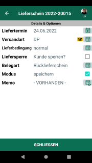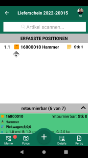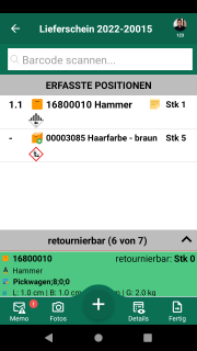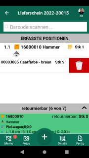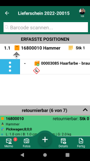 Omnimde ablauf retoure kundenretoure beleguebersicht 06 erfasstesitem swipe links.png